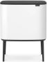 Brabantia Bo touch bin 11+23 liter white 313547Op zoek naar een mooie oplossing om je afval te scheiden? Deze Brabantia Bo Touch Bin van 23 + 11 liter ziet er uit als een kastje en heeft alles wat je nodig hebt om gemakkelijk afval te scheiden. Zoals twee uitneembare binnen emmers voor twee soorten afval, verstelbare antislip voetjes voor stabiliteit en een rechthoekige vorm waardoor Bo perfect tegen een muur past. Door de soft-touch opening is de lichtste aanraking genoeg om het deksel te openen. Dat is afval scheiden in stijl!Voordelen & KenmerkenIdeaal voor afval scheiden - twee binnen emmers.Ruim - L volume (23 + 11 liter).Opent bij de lichtste aanraking - soft-touch openingssysteem.Zo schoon - twee uitneembare kunststof binnen emmers.Ruimtebesparend - past strak tegen de muur of handig in een hoek.Makkelijk en stabiel - klikpoten met verstelbare antislip voetjes.Beter voor je rug en makkelijk schoonmaken - op pootjes voor de perfecte werkhoogte.Hyginisch - geen geknoei